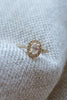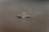 Een 18k geel gouden ring bezet met een ovale natuurlijke diamant van 0.65 karaat en omringd door een elegante halo van sprankelende diamanten.